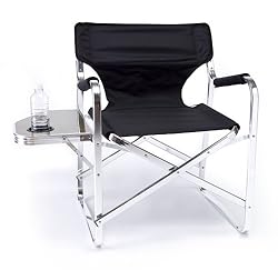 FREE SHIPPING TODAY! Super Lightweight Premium Folding Directors Chair with Side Table and Cup Holder. It features a Highly Polished, Flat Reinforced Aluminum Tubing, which gives it a contemporary look for use inside the Home or Patio, and rugged enough for any Outdoor use. It has a convenient Side Table with Cup Holder and it folds flat for easy Storage. Washable and Mildew Resistant 600D Black Fabric adds a quality look. Perfect for any Home, Trade Show, Patio, Camping, or as Outdoor Furniture, and much more! And, it ships Factory Direct within two business days, OR IT'S FREE!